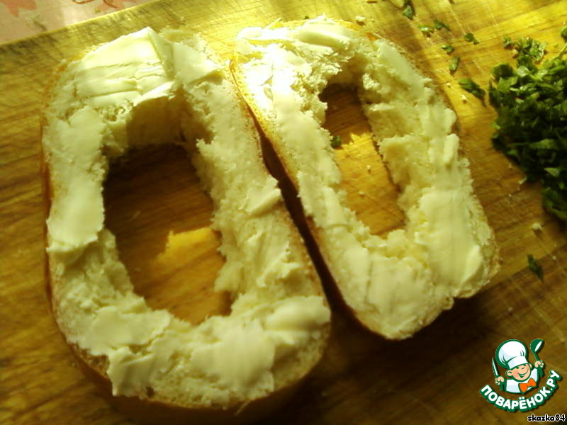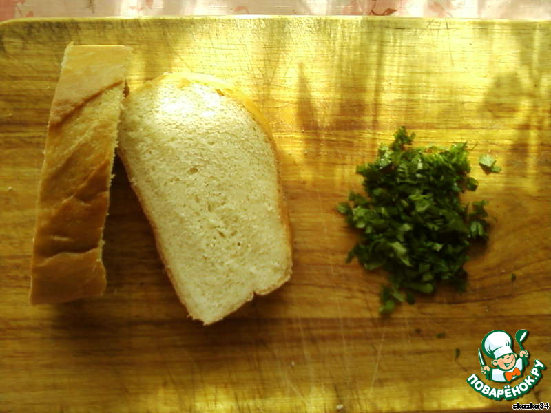 • Отрезаем 2 толстеньких ломтя (стараемся ровно!) и измельчаем зелень