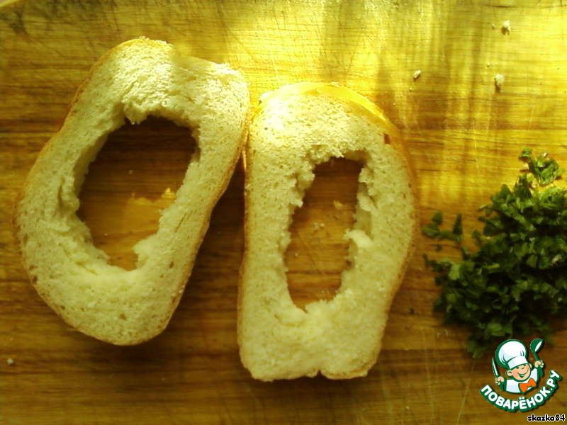 • В каждом ломте аккуратно вырезаем сердцевину (её можно скормить бегающему под ногами сынишке )) Стараемся не повредить корочку!