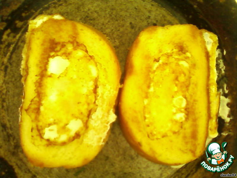 • Разогреваем сковороду и кладём наши ломтики маслом вниз!