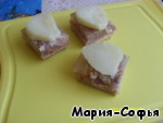 Студень порезать так, чтобы совпадал по размеру с хлебом