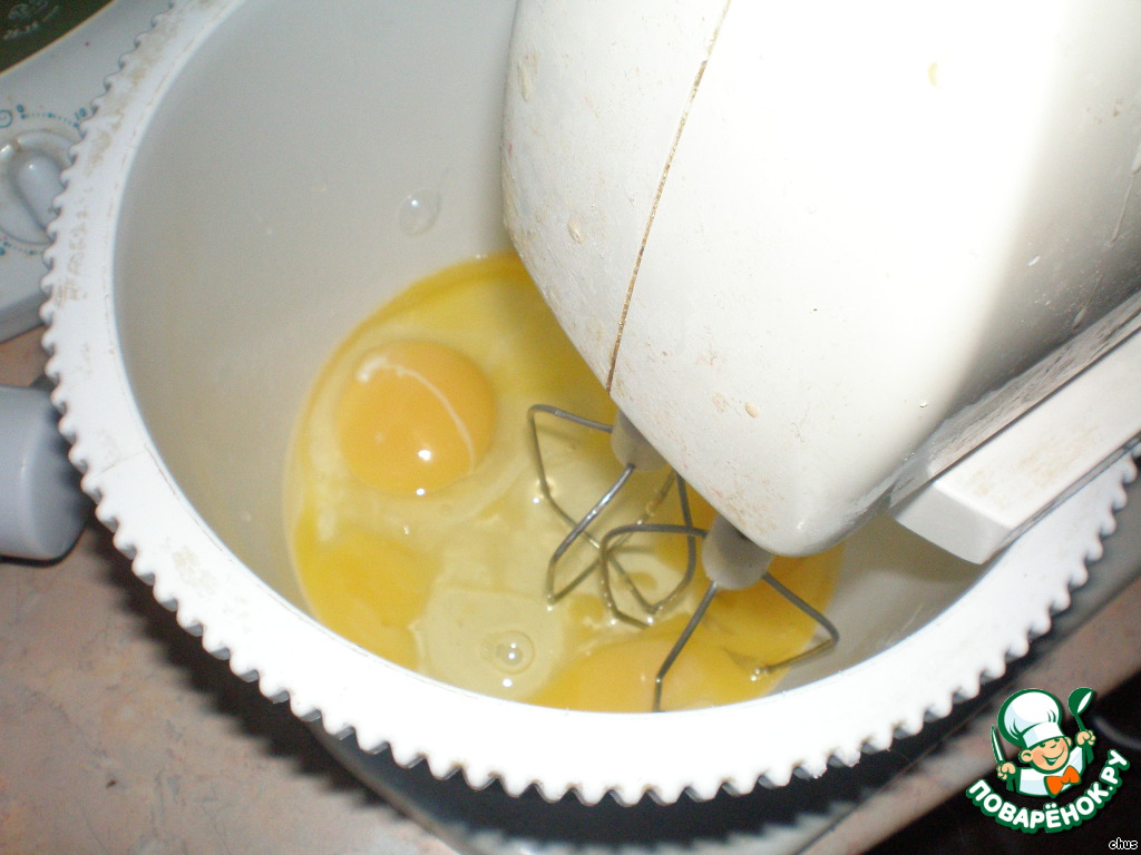 • желтки отделить от белков и взбить миксером пока масса не загустеет