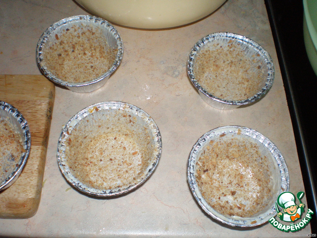 Формочки обильно смазать сливочным маслом и обсыпать панировочными сухарями. -
