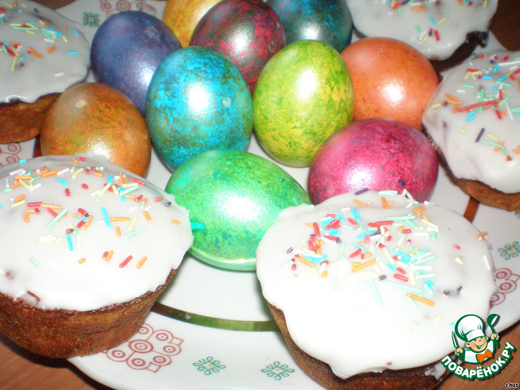 Рецепт вырезан из какого-то старого кулинарного журнала, пекла несколько раз. В этот раз приспособила в виде куличиков на пасху. Моим очень нравится, особенно то, что в них муки нет. Попробуйте и ВЫ!!!