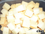 Пока сыр мягкий, быстро раскатать его скалкой в виде квадрата,
