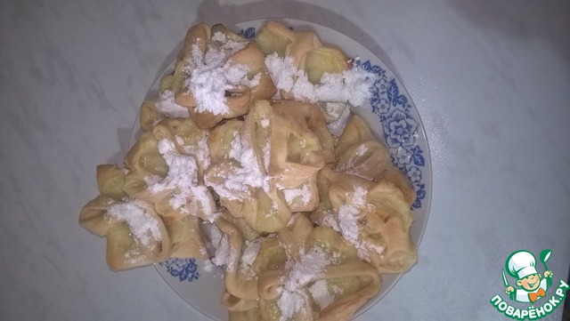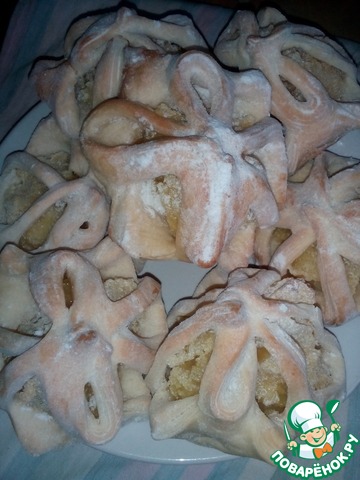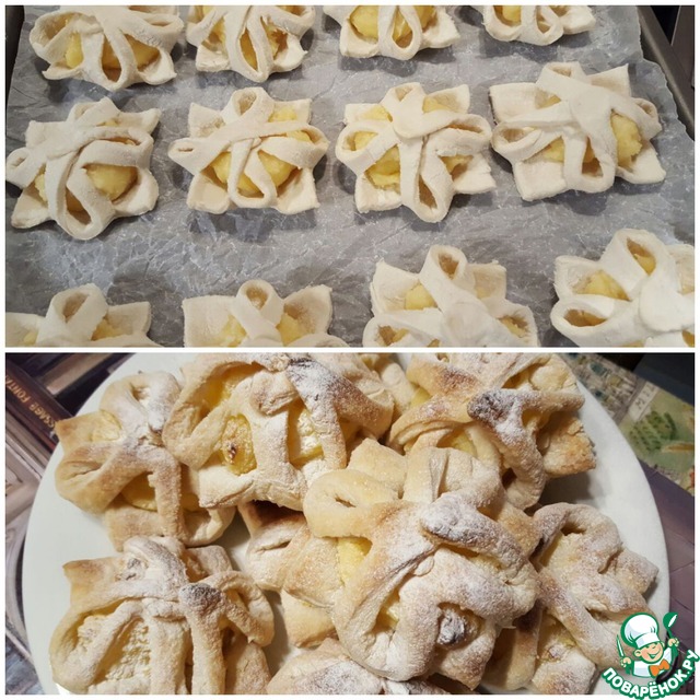 Выпекать в духовке, 200градусов, минут двадцать. Затем выложить на блюдо и посыпать сахарной пудрой.