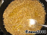 Готовим "Памятник танкистам" . В разогретое на сковороде растительное масло кладем все специи, слегка обжариваем, тонким слоем распределяем рис сверху. Перемешиваем, чтобы он пропитался маслом и травками. Слегка обжариваем.