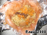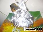 Завернем в фольгу. Духовку разогреем до 250 градусов (у меня электрическая с верхним и нижним подогревом. Выкладываем на политый водой противень мешочки. Выпекаем 20-25 мин., подливая воду, если та испарится. Потом приоткрываем фольгу, капаем по чайной ложке соевого соуса на каждый мешочек и оставляем подрумяниться еще минут на 10. (В этом месте можно сверху положить ломтики моцареллы, но у меня - без нее).