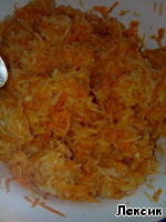Натираем на мелкой терке морковку, картошку, лук режем мелко-мелко, все перемешиваем, солим
