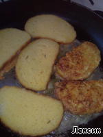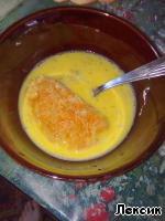 Окунаем наш кусочек в яйцо, осторожно, не переворачивая, чтобы не упала смесь.