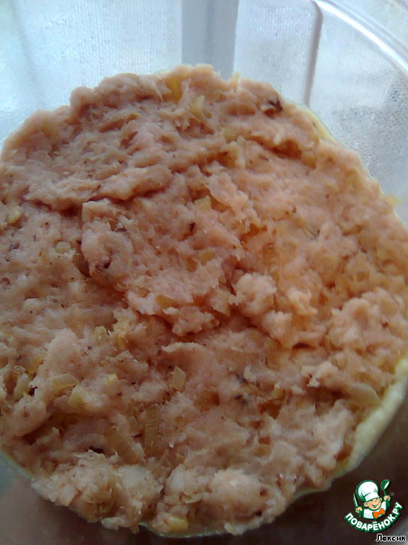 второй слой: фарш с жареным луком
