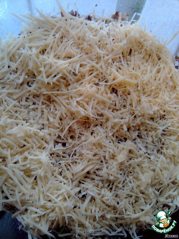 посыпаем тертым сыром. И снова повторить все с первого слоя (у меня получилось два слоя)