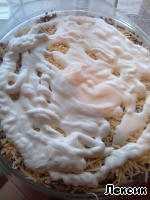 Когда слои уложены, смазать майонезом и в духовку минут на 35-45