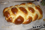Рецепт стандартной халы, только я попробовала добавить туда сначала изюм, а потом повидло и всe, с чем еe есть было бы вкуснее :))а белые просветы на фото из-за того, что в тех местах плохо промазала, и поэтому после выпечки получилось вот такое :)))