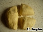 Тесто делим пополам, а одну часть ещё раз пополам.