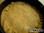 В форму кладём наше тесто и руками расправляем по форме. Делаем высокие бортики.
