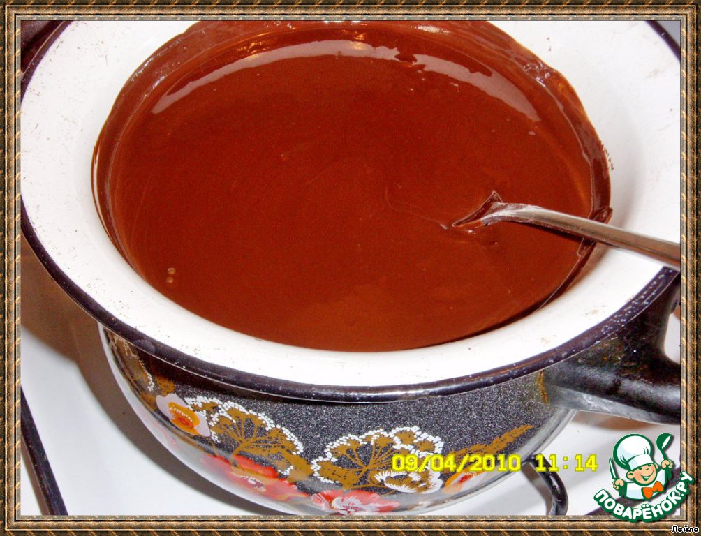 Если при нарезании шоколад будет ломаться, то окунайте нож в горячую воду, насуxо вытирайте и нарезайте пирог.