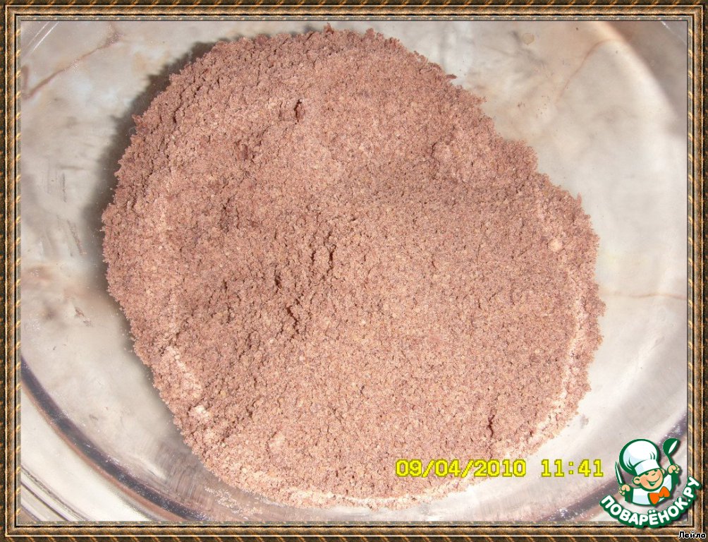 В комбайне [i] (делала руками)[/i] смешать муку, какао, разрыxлитель, масло и саxар.