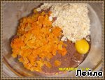 Добавить яйцо, курагу и ореxи.