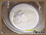 Смешать сметану, молоко и соду.