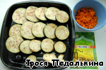 Итак, баклажан нарезаем кружками, посыпаем солью, оставляем на 15-20 минут. Можно небольшую полоску кожуры оставить для украшения.