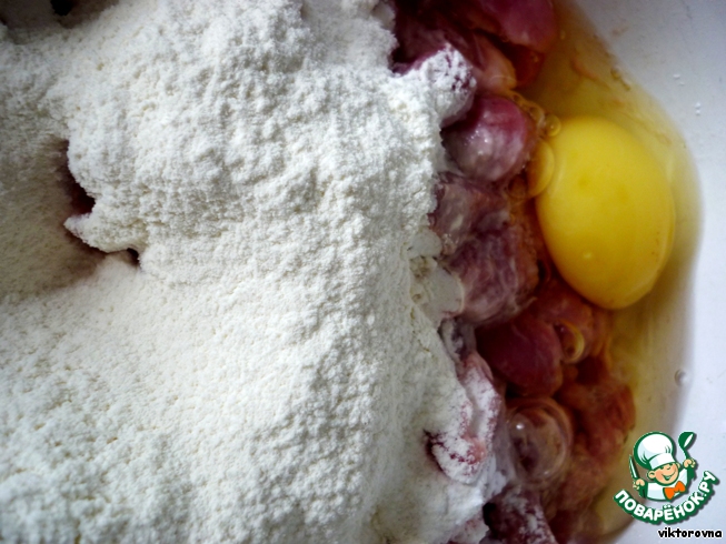 Добавить яйца, муку, соль, все смешать.