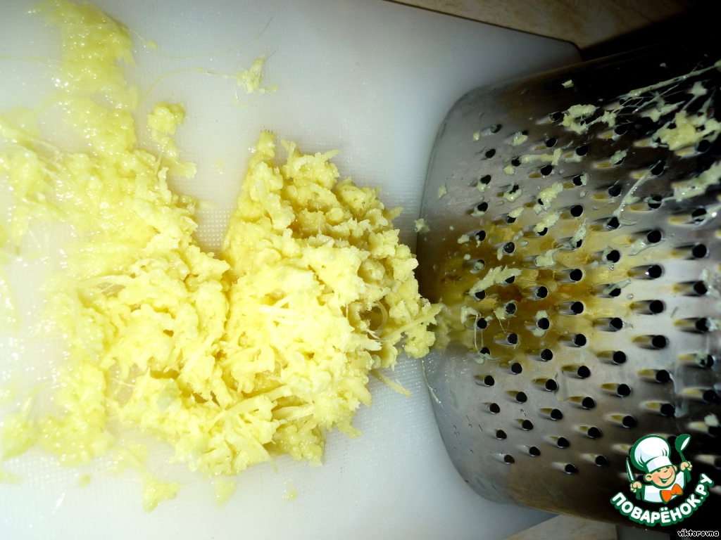 чистим и трем на терке имбирь и чеснок по вкусу, в этот раз у меня 1 зубчик. -