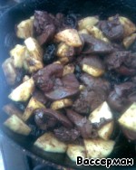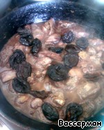 Печень в вине с черносливом и яблоком
