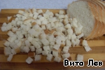 Батон нарезаем небольшим кубиком 0.5-1см не крупнее. Батона идет много поэтому нарезайте сразу весь.