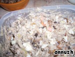 Смешиваем все ингредиенты и ... вуаля! Салат готов!!! Домашним ну очень понравилось:) И именно жареная консерва добавила какой-то необчно-вкусный аромат, по желанию можно сдобрить соленым огурчиком и укропом, но это индивидуально. Приятного аппетита!!!