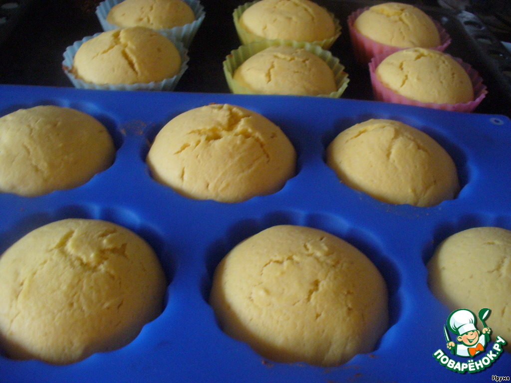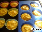 Когда тесто поднимется, закладываем его в формы для кексов.