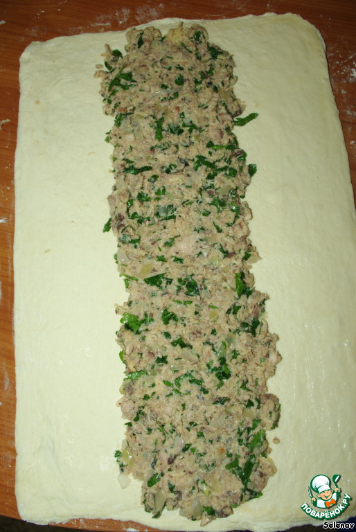 -Выложите начинку из тунца в середину прямоугольника -