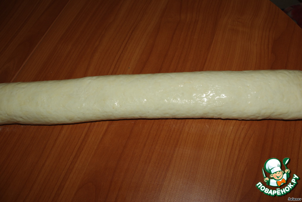 -Раскатайте тесто в прямоугольник размером примерно 40х20 см, толщиной 3 мм