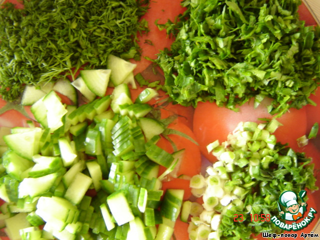 • Зелень (разная: лук зеленый, петрушка, укроп по ) — 30 г