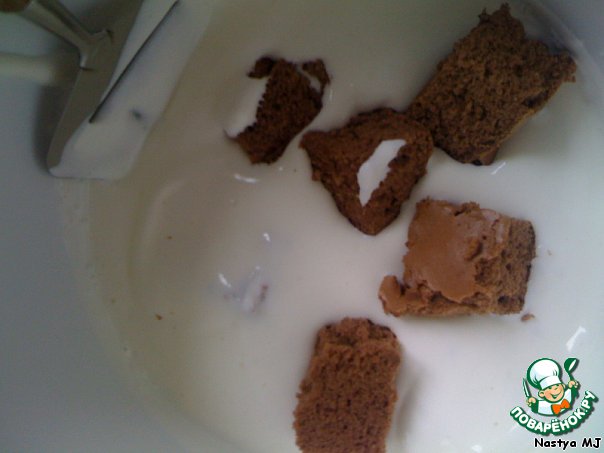 Верх собирается из кусочков бисквита. Каждый кусочек нужно обмакнуть в крем