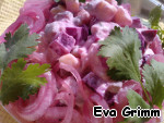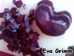 Режем свеколку кубиком и добавляем к салату, миксуем %)