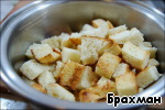 - Берем сухари. Покупные или делаем сами. Тут момент: я люблю крупные, когда на срезе видны крупные куски. Вы же смотрите сами.
