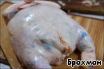 - Для начала курицу следует "раздеть". Сделать это несложно. Начинаем с гузки. Не забываем удалять железу.
