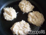 На разогретую сковородку выкладываем фарш ложкой и жарим на среднем огне, по нескольку минут с каждой стороны, до румяной корочки. Остывая, оладьи становятся плотнее.