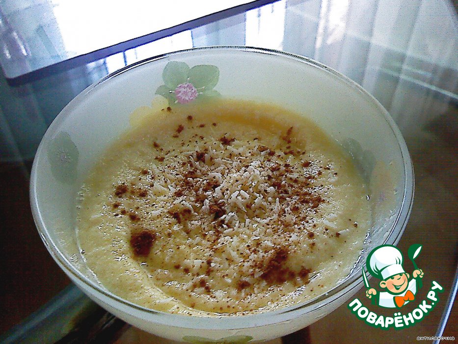 Перекладываем десерт в пиалу, украшаем корицей и кокосовой стружкой. Едим теплым.