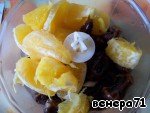 Апельсин почистить и нарезать.