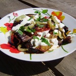 Аккуратно выкладываем баклажаны, сбрызгиваем остатками йогуртовой смеси и посыпаем сушеной мятой.