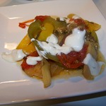 Поверх блюда красиво выкладываем перец, пару листьев кинзы.