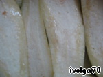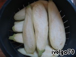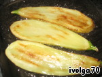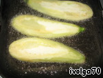 Теперь ставим сковороду с маслом на хороший огонь. Если масло кипит, то баклажаны возьмут меньше масла. А нашу парочку отправляем на чистое полотенце обсушиться.