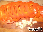 Чеснок измельчаем, а болгарский перец режем кольцами