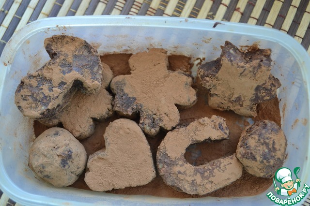 Обваливаем в оставшемся какао и оставляем немного подсохнуть (если у Вас еще осталось хоть немного терпения). -