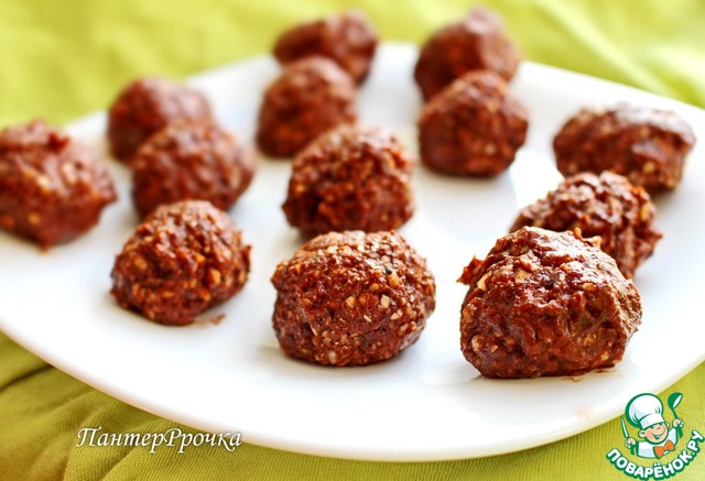 На сайте много различных вариантов рецептов конфет из сухофруктов, но мне этот нравится тем, что в состав не входит ни масло, ни сахар. Все очень просто и доступно. Угощайтесь!