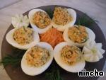 Яйца очищаем, разрезаем вдоль на две половинки и вынимаем желток.