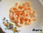 Креветки залить горячей водой, дать оттаять, почистить.