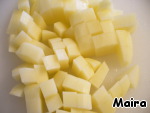 Картофель нарезать кубиками.