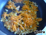 Лук и морковь обжарить на растительном масле 5-6 минут.